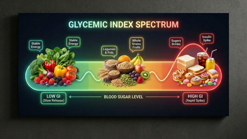 Searchable database of foods with GI scores. Filter by low/medium/high. Great for blood sugar management education.