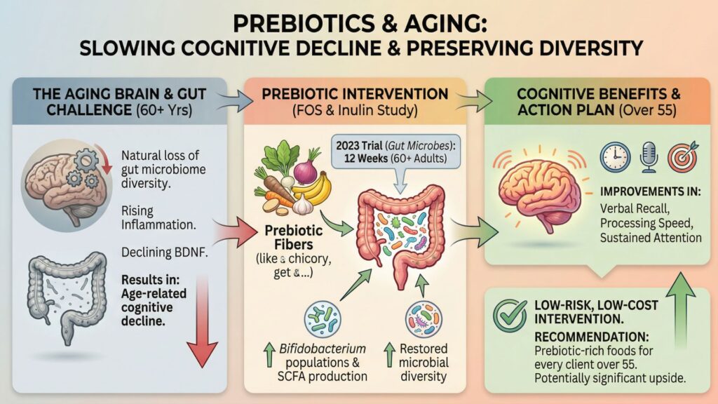 I have started recommending prebiotic-rich foods to every client over 55, regardless of their primary health concern. The risk is essentially zero. The potential upside, based on the trajectory of the evidence, is significant.